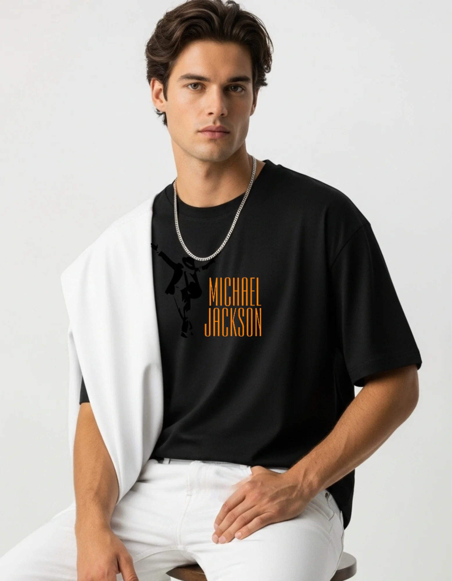 Men’s Cotton Printed White Oversized T-Shirt | Half Sleeves